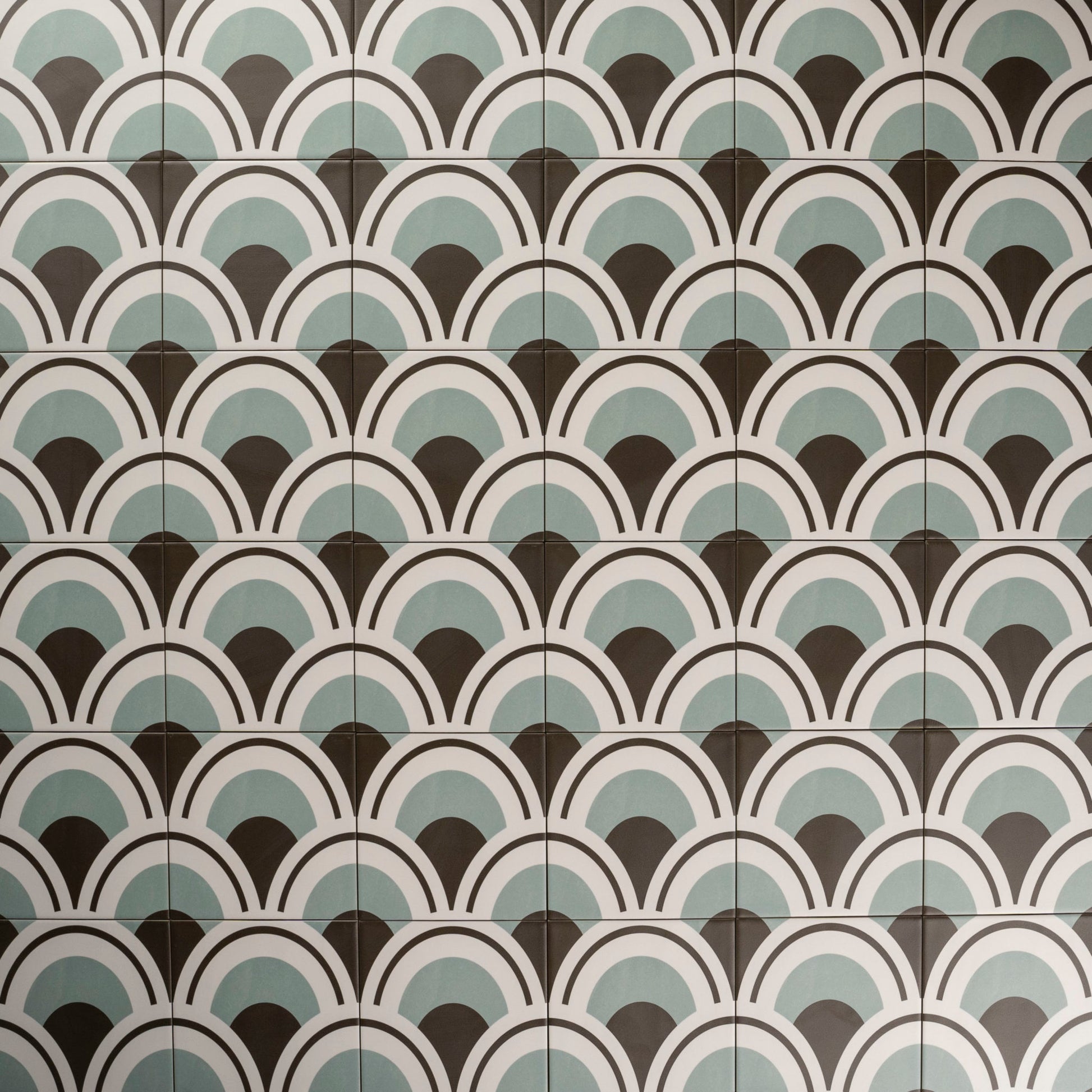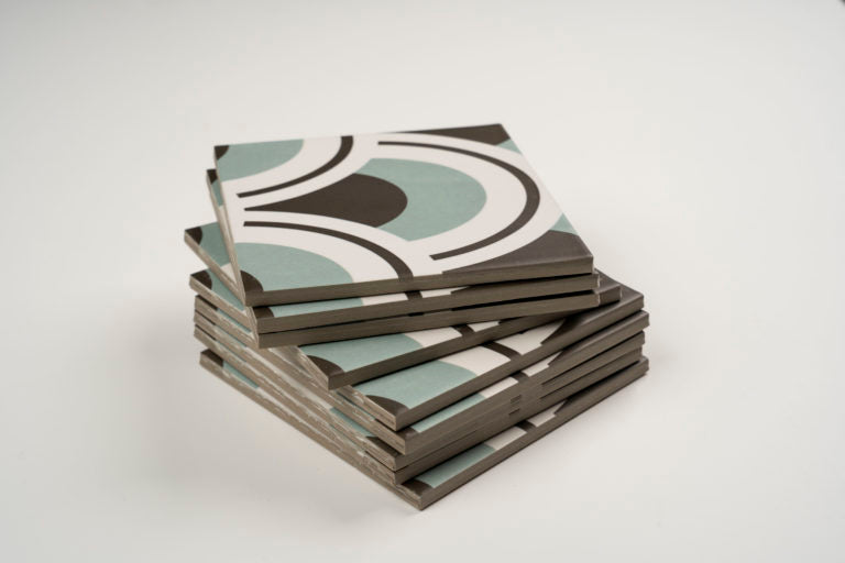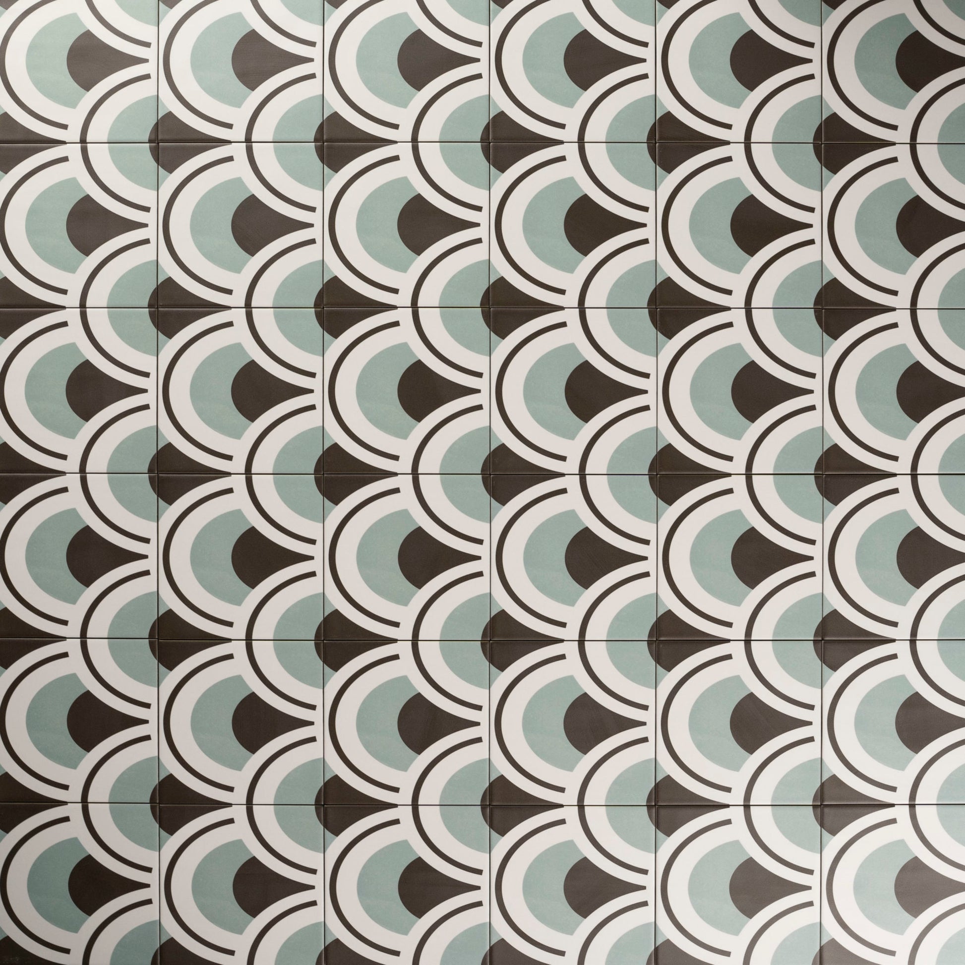 Die Marina Dekor Wandfliese aus Feinsteinzeug besticht ein durchdachtes geometrisches Schuppenmuster, das vielfältige Verlegemöglichkeiten ermöglicht. Stärke 8 mm.