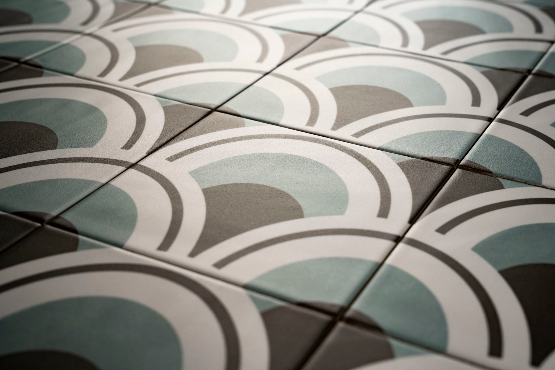 Zwischen den Fliesen sind relativ deutlich Unterschiede in Farbe und Struktur erkennbar.